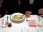 Püreesuppe von Mangold, Semmelpudding von getrockneten Steinpilzen